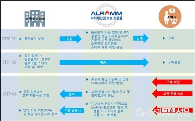 이에 따라 관세청이 인가한 (사)무역관련 지식재산권 보호협회(이하 ‘TIPA’)는 ㈜아람코리아와와 제휴해 병행수입 통관표지 부착물품 전문쇼핑몰인 ‘알람몰’을 지난해 10월부터 시범운영해 왔다.