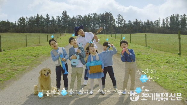삼성화재 광고모델 차태현과 최근 인기리에 종영한 '응답하라 1988'의 아역 배우 5명이 '봄봄밴드'를 결성, 어린이 안심송을 부르며 고객들을 찾아간다.