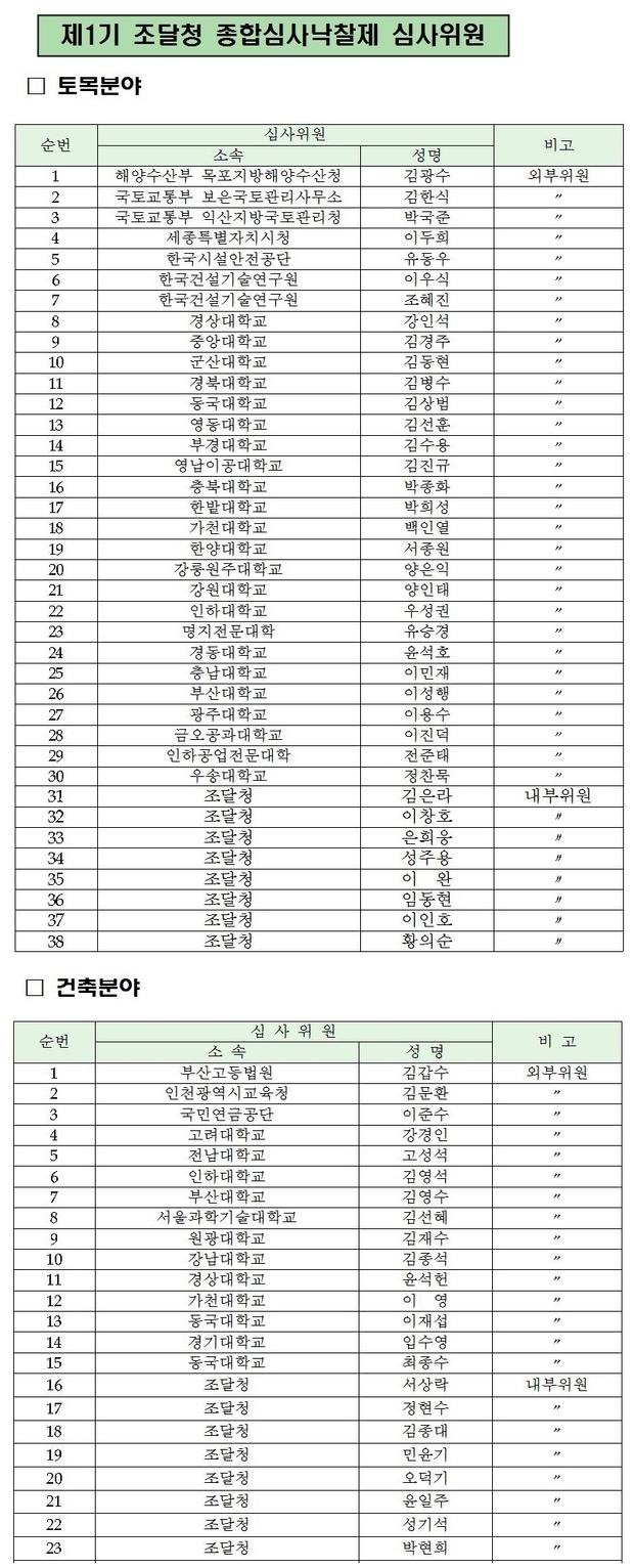 심사위원은 조달청에서 집행하는 연간 2조원 규모의 종합심사낙찰제 대상공사의 물량과 시공계획 심사를 수행하게 된다.