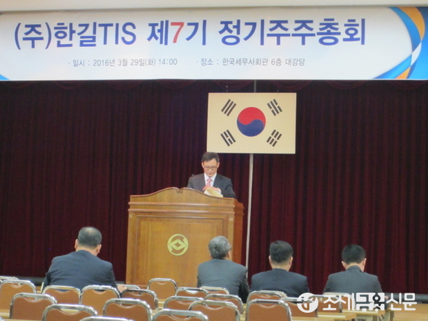 (조세금융신문=나홍선 기자) 한국세무사회 전산법인 (주)한길TIS(대표 권길성)는 3월 29일 오후 2시 한국세무사회관 6층 대강당에서 제7기 정기 주주총회를 개최했다.이날 총회에서는 감사보고 및 영업보고에 이어 제7기 재무제표 승인 및 이사 선임의 건을 의결했다.