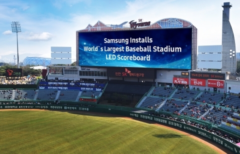 (조세금융신문=최일혁 기자) 삼성전자가 인천시 문학동 SK행복드림 야구장에 가로 63.398미터, 세로 17.962미터에 달하는 세계 최대 크기의 전광판을 공급했다고 밝혔다.