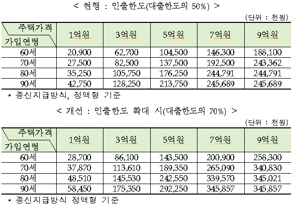 60세 이상자의 주담대 평균 잔액이 6900만원인 점을 감안하면 고령층 주담대 대부분을 흡수 가능할 전망이다.
