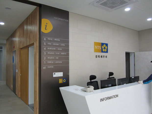 성북세무서 신청사는 1층에 민원실과 납세자보호관실을 배치했으며, 2층은 개인납세1과와 강당, 3층 개인납세2과와 조사과, 4층 재산법인납세과, 5층 서장실과 운영지원과로 구성됐다.