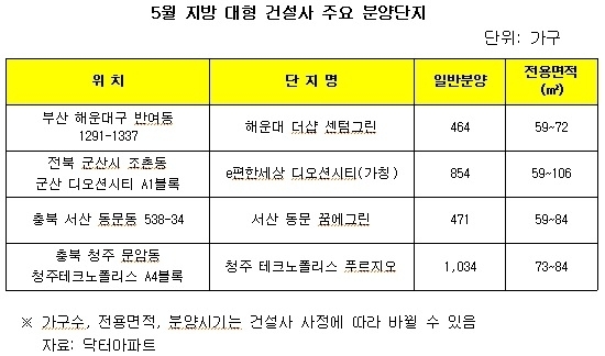5월 중 지방에서 분양예정인 대형 건설사의 분양단지를 살펴보았다.