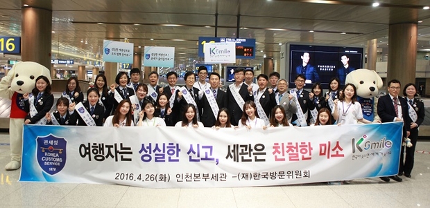 (조세금융신문=양학섭 기자)인천세관(세관장 김대섭)은 지난 4월 26일 인천공항 입국장에서 우리나라를 찾은 외국인 관광객과 해외여행자를 대상으로 성실신고 및 스마일캠페인을 실시했다고 27일 밝혔다.