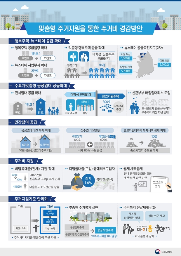 국토교통부는 28일 이런 내용을 골자로 한 ‘맞춤형 주거지원을 통한 주거비 경감방안’을 발표했다.
