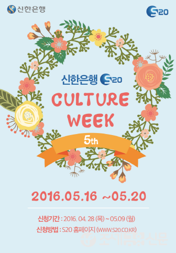 (조세금융신문=김사선 기자) 신한은행은 16일부터 20일까지 일주일 동안 20대 고객들을 대상으로 다양한 문화활동을 지원하는 ‘S20 Culture Week’를 진행한다고 4일 밝혔다.