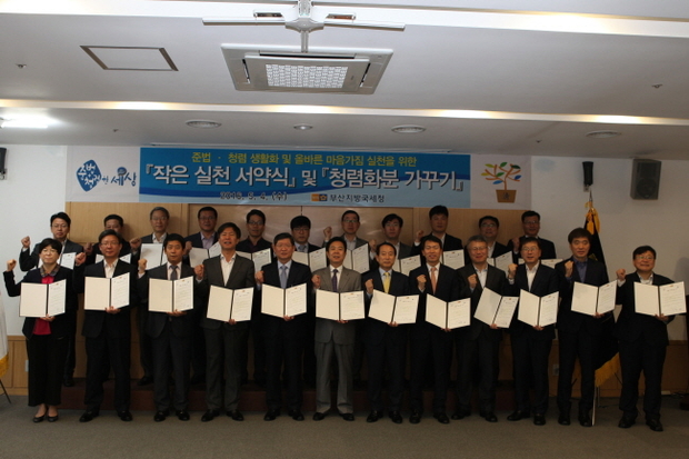 (조세금융신문=나홍선 기자) 부산지방국세청(청장 최현민)은 5월 4일 청사 9층 대회의실에서 지방청 과장 이상 간부 23명을 대상으로 ‘작은 실천 서약식’ 및 ‘청렴화분 가꾸기’ 행사를 실시했다고 밝혔다.