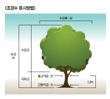 조경수목은 그 희귀성이나 재산적 가치보다는 외형적 크기(수고·흉고 직경 등), 이식의 난이도를 기준으로 평가하게 되므로 수량을 정확히 파악하는데 중점을 두고 조사한다. 수량이 많은 경우 한그루씩 사진을 촬영할 필요는 없으나, 주요 수종을 설명판에 기입하고 수목의 전반적인 현황이 나타날 수 있도록 촬영한다.
