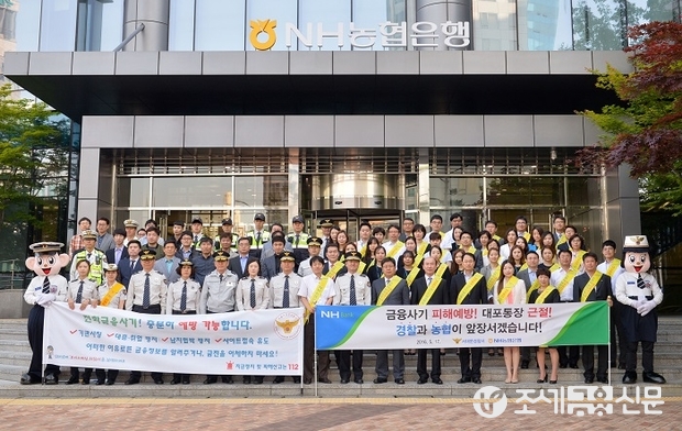 한편 농협은행은 지난 4월부터 전국 영업점별로 지방 경찰서 등 정부기관과‘합동 금융사기 피해예방 및 대포통장 근절 캠페인’을 통해 금융사기 예방 효과와 대포통장근절을 위한 농협은행과 경찰서의 노력을 국민들에게 널리 알리고 있다.