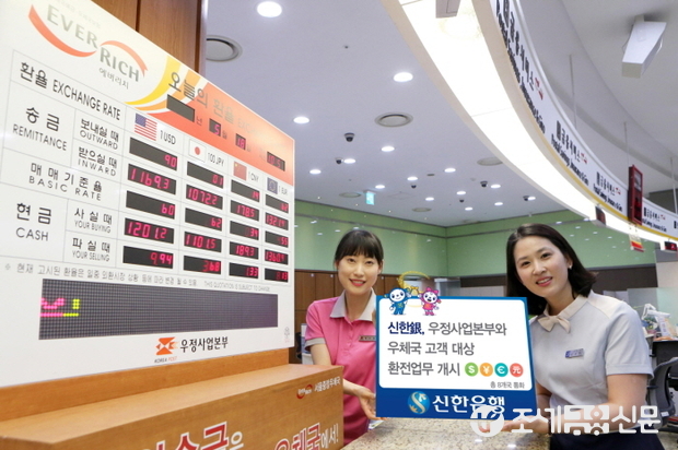 신한은행은 2004년 우체국과 업무협약을 통해 해외송금업무를 맡아왔고, 이번 환전업무 협약으로 우체국을 거래하는 고객은 전국 2,600여개 우체국 창구 뿐만 아니라, 우체국 인터넷뱅킹 및 모바일뱅킹에서 환전 신청 후 신한은행의 인천국제공항과 김포공항 환전소에서 해외 출국 전에 편리하게 외화 수령이 가능하게 됐다.