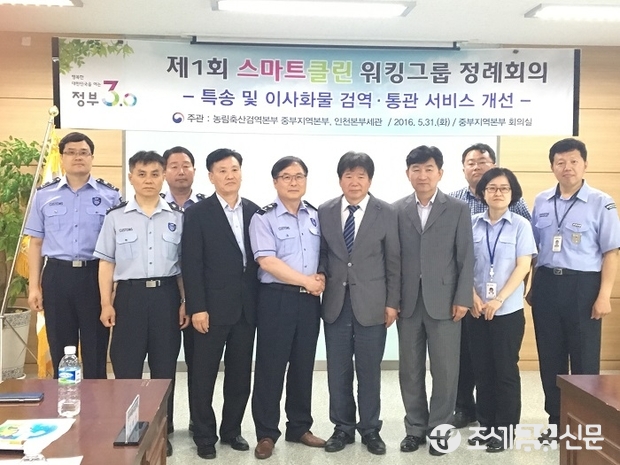 (조세금융신문=양학섭 기자)인천본부세관(세관장 김대섭)은 31일 농림축산검역본부 중부지역본부와 해상특송 및 이사화물 검역·통관 서비스 개선을 위하여‘스마트클린’ 워킹그룹을 구성했다고 밝혔다.