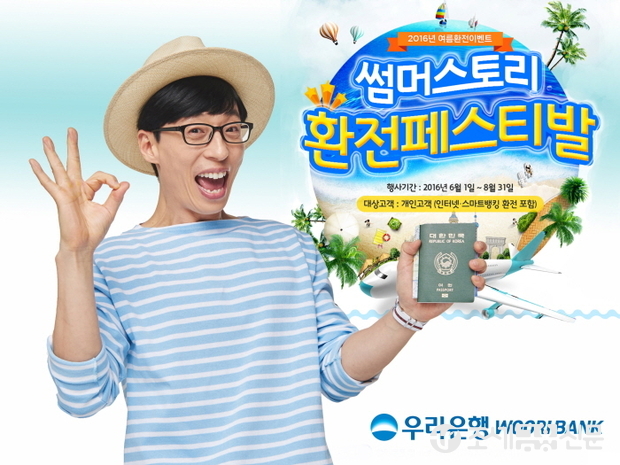 (조세금융신문=김사선 기자) 우리은행(은행장 이광구, www.wooribank.com)은 여름방학 및 휴가철을 맞이하여 오는 8월말까지 석 달 동안 최대 75% 환율우대와 여행관련 할인쿠폰 및 경품 등을 제공하는 2016 여름 환전이벤트 ‘썸머스토리 환전페스티발’을 실시한다고 1일 밝혔다.