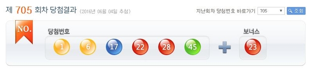나눔로또는 4일 제705회 로또복권 추첨에서 ‘1, 6, 17, 22, 28, 45'가 1등 당첨번호로 뽑혔다고 밝혔다. 2등인 보너스번호는 23이다.