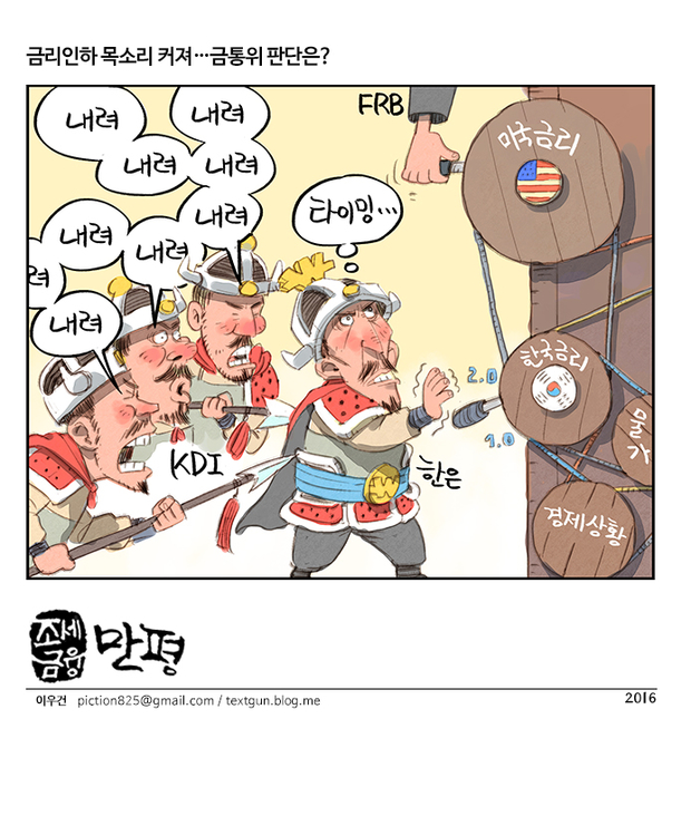 [조세금융 만평]금리인하 목소리 커져...금통위 판단은?