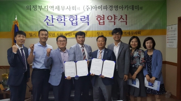 (조세금융신문=나홍선 기자) 의정부지역세무사회(회장 이금주)는 지난 9일 의정부지역세무사회 사무실에서 (주)아이파경영아파데미(대표 구순서)와 산학협력 협약식을 갖고 세무사무소 직원들의 업무능력 향상을 위한 교육훈련 운영에 관한 업무협약을 체결했다.