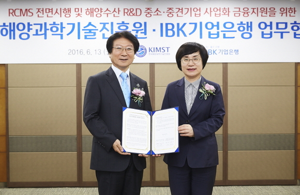 또 기업은행은 KIMST가 추천하는 해양수산 중소·중견기업에게 대출 확대, 금리 우대 등 금융지원과 컨설팅 서비스를 제공하기로 했다.