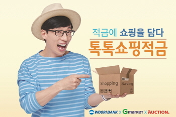 (조세금융신문=김사선 기자) 우리은행(은행장 이광구, www.wooribank.com)은 적금 가입 후 G마켓 또는 옥션을 이용할 경우 쇼핑시 현금처럼 사용할 수 있는 스마일캐시를 적립해주는‘톡톡쇼핑적금<G마켓‧옥션>’을 출시했다고 23일 밝혔다.