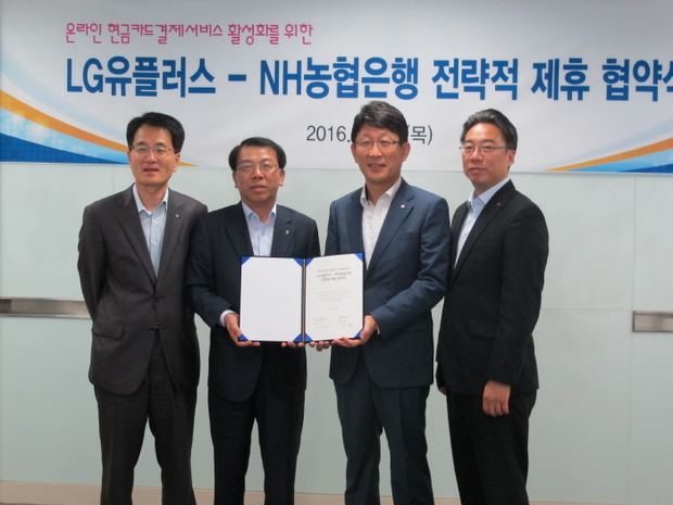 (조세금융신문=김사선 기자) NH농협은행(은행장 이경섭)은 23일 LG유플러스(대표 권영수)와 ‘온라인 현금카드결제서비스 활성화를 위한 전략적 협약’을 맺었다고 밝혔다.