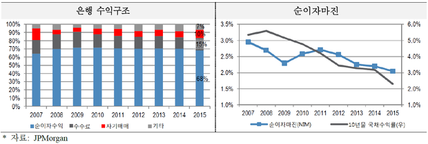 (조세금융신문=김사선 기자) JPMorgan이 국내 은행산업은 저금리 기조하에서 수익성이 계속 하락하고 있지만 향후 비이자수입 제고, 임금체계 개선 등이 영업이익률 증가로 이어져 성장할 것이라고 전망했다.