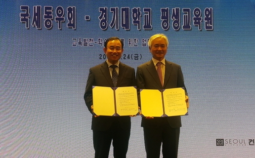 (조세금융신문=나홍선 기자) (사)국세동우회 자원봉사단(단장 김남문)은 6월 24일 오전 10시 30분 여의도 소재 루나미엘레 웨딩홀에서 경기대학교 평생교육원 경영학 전공(전담교수 이주일)과 납세홍보 및 국세 가족의 면학 분위기 조성을 위해 상호 협력하는 내용의 MOU를 체결했다.이번 업무협약은 납세행정의 발전과 창의적인 고급 전문 인력 육성을 위한 교육 및 연구 분야의 활성화를 통해 국가 발전에 이바지하기 위한 취지로 마련됐다.