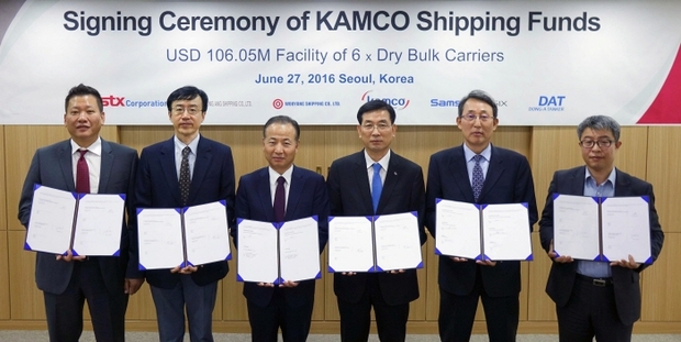 (조세금융신문=김사선 기자) 캠코(한국자산관리공사, 사장 홍영만)는 27일 오전 10시 30분 캠코 서울지역본부(서울시 강남구 역삼동)에서 삼선로직스, 우양상선, 중앙상선, STX와 ‘한국 토니지 8호~13호 선박펀드’의 본계약을 체결하고, 각 해운사 보유 선박 6척을 인수한다고 밝혔다.