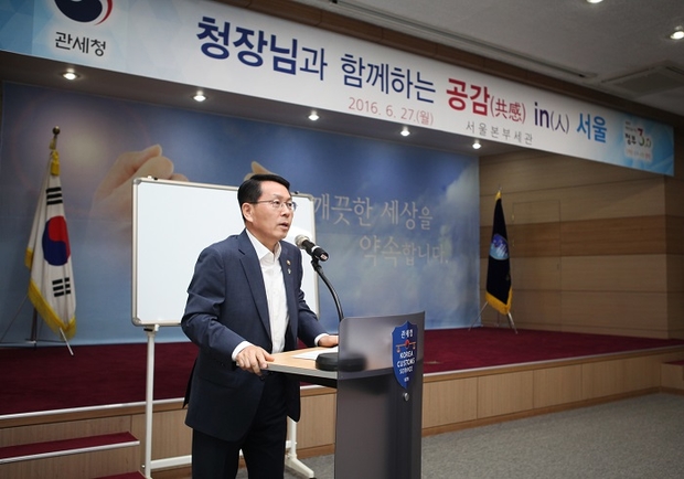 27일 천 청장은 서울본부세관(세관장 차두삼)을 방문해 직원과 소통하기 위한 토크콘서트 형식의 “공감(共感) in(人) 서울”을 진행하고 경제단체 등 각 업계 대표 12명을 초청해 간담회를 개최했다.
