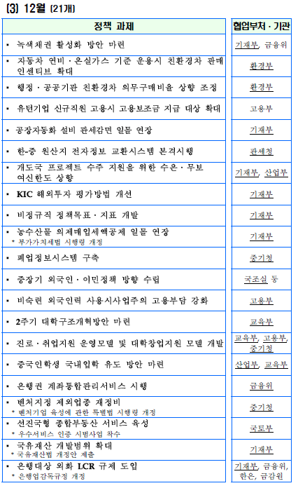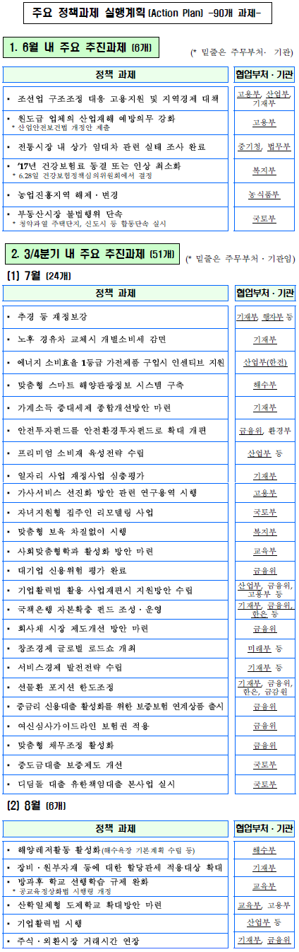 [표] 2016년 하반기 경제정책 방향- 정책과제 실행계획