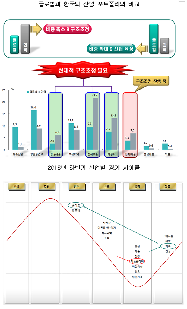 연구소는 글로벌 수출 포트폴리오와 한국의 수출 포트폴리오 분석을 통해 조선, 철강 등 일부 산업의 경우 한국의 포트폴리오 비중이 비정상적으로 높아 경기 침체 시 위기에 직면할 수밖에 없는 구조적인 문제가 있었다고 주장했다.