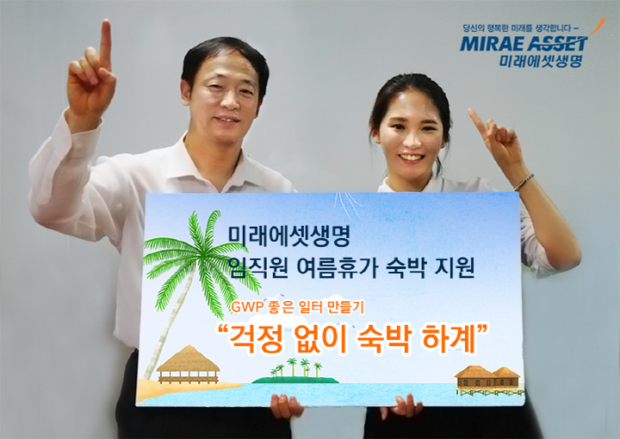 김상녕 미래에셋생명 경영지원본부장은 “올해로 2회째를 맞이하는 ‘걱정 없이 숙박 하계’ 이벤트는 휴가철 극성수기에 숙박장소를 구하지 못해 휴가 계획을 세우지 못하고 있는 직원들을 위해 마련했다”며 “앞으로도 지속적인 GWP 활동을 통해 임직원의 복지환경을 개선하고, 일과 삶의 균형을 도모할 수 있도록 노력하겠다”고 밝혔다.