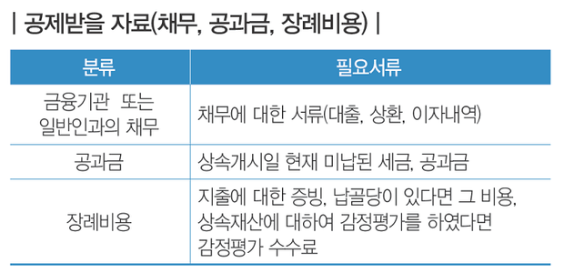 상속세 준비서류는 간단히 말하면 상속인과 피상속인에 대한 기본자료, 상속재산에 대한 자료, 공제 받을 자료를 챙기는 것이다. 내역은 다음과 같다. 다음 표를 보고 체크하면 자료준비가 어렵지 않을 것이다.