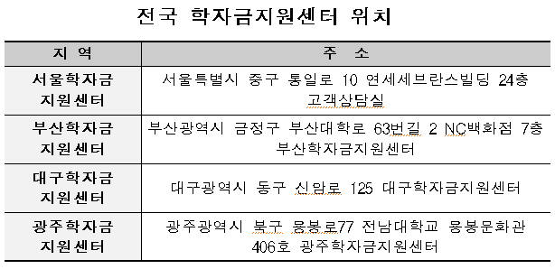 학자금 대출은 본인의 공인인증서를 사용하여 한국장학재단 홈페이지(www.kosaf.go.kr)를 통해 신청하면, 등록금은 11일부터 9월 30일까지, 생활비는 10월 31일)까지 대출을 실행할 수 있다. 다만 등록금 분할대출 시 신청기간은 10월 31일까지이다.