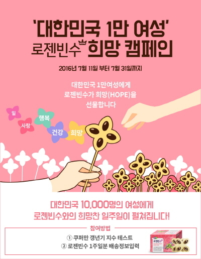 참여 고객 중 1만 명에게는 그린체 가맹점에서 배송 확인전화 후 여성 전문 건강기능식품 ‘로젠빈수’ 7일 체험분을 증정한다.