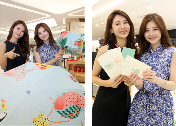 또한 오는 10월 EXO, EXID, 마마무, 이적, 김범수, 국카스텐 등 국내 최정상급 아티스트들이 출연하는 패밀리 페스티벌 초대권도 구매 금액에 따라 선착순 증정한다. 이 외에도 점별 다양한 프로모션과 최대 28만원까지 증정하는 선불카드 행사 및 디자이너 콜라보 우산 등 실속 있는 사은품을 증정하는 행사를 마련해 여름 휴가철을 맞아 해외여행을 준비하는 고객들에게 다양한 쇼핑 혜택을 제공한다.
