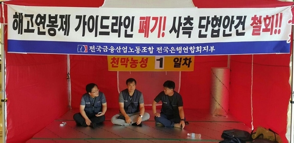 금융노조는 18일부터 은행회관 1층 로비에서 ‘해고연봉제 가이드라인 폐기, 사측 단협 안건 철회’를 요구하며 천막농성에 돌입했으며, 20일 오전 은행연합회 1층에서 총파업 1차 결의대회를 시작으로 지부별 순회집회에 돌입하는 등 9월 총파업 및 하반기 총력투쟁을 위한 현장 조직화에 적극 나설 계획이다.