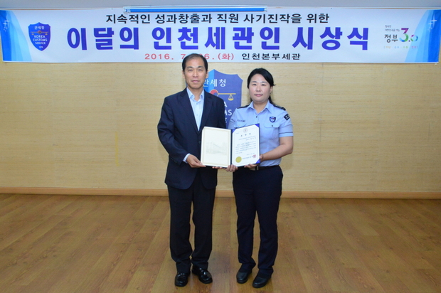 이외에도 인천본부세관은 7월의 친절‧봉사 직원으로 김미자 관세행정관, 2분기 우수 새내기로는 안혜림 관세행정관을 선정해 시상했다.