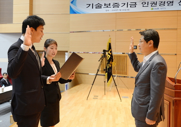 (조세금융신문=김사선 기자) 기술보증기금(이사장 김한철, 이하 ‘기보’)은 26일 부산 본점 대강당에서 임원진을 비롯한 전국 각 지역본부장과 영업점장이 참석한 가운데 “기술보증기금 인권경영 선포식”을 개최했다고 27일 밝혔다.