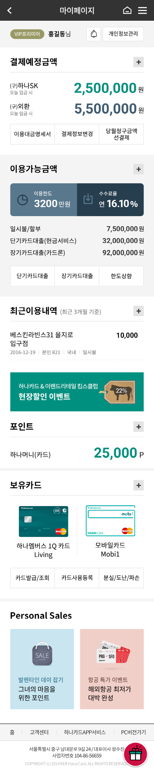 이어서 하나카드는 모바일 홈페이지와, App에 있는 ‘마이페이지’의 개인화서비스를 강화하여 손님 개개인의 카드이용내역조회, 카드상품 추천은 물론 카드실적에 따른 혜택조회, 포인트 혜택 등 빅데이터를 통한 차별화된 서비스를 제공한다.