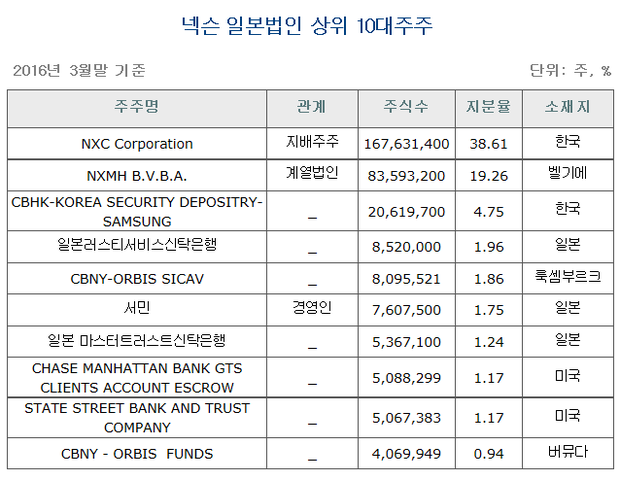 따라서 업계 전문가들은 엔엑스씨가 보유하던 넥슨 일본법인의 지분이 일본 주식시장을 통해 상당 부분 ’NXMH B.V.B.A’ 등으로 이동한 것으로 보고 있다.