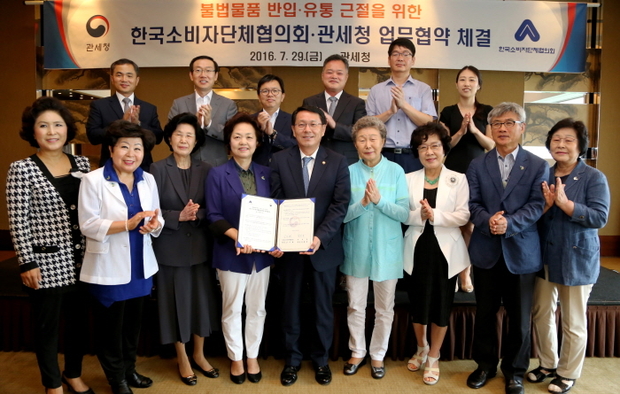 (조세금융신문=김사선 기자) 관세청은 한국소비자단체협의회와 29일, 그랜드 하얏트 서울에서 ‘국민건강․안전 위해물품의 불법반입․유통 근절을 위한 업무협약’을 체결했다고 밝혔다.