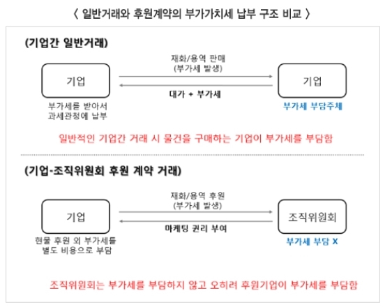 이는 후원계약의 경우 현물 후원을 받는 조직위가 휘장사용권(마케팅권리)만 대가로 지급하고, 부가가치세는 부담하지 않고 있기 때문이다.