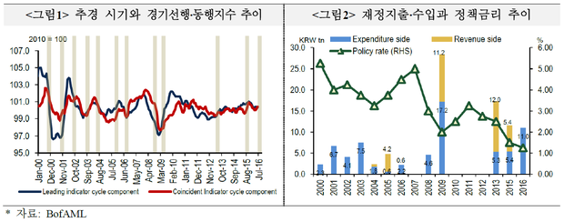 BofAML는 한국정부는 과거 경기동행∙경기선행지수가 하락할 때 추경이 편성되고 금리도 인하되는 등 정책공조가 강화했다고 언급했다.