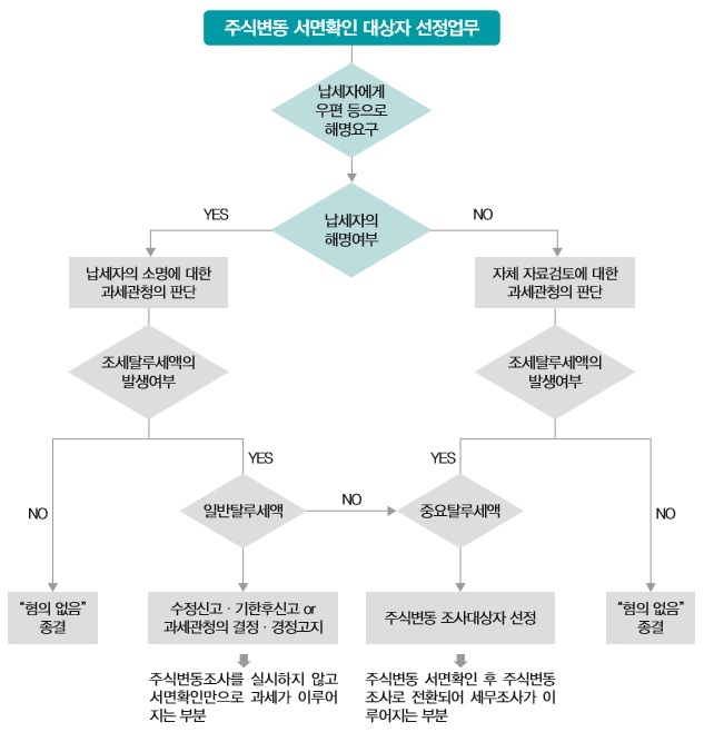 따라서 과세관청이 우편 등의 질문에 의해 납세자에게 주식취득자금 등에 대한 소명을 요구하고, 납세자의 해명내용이 조세탈루 혐의가 없는 것으로 판단되는 경우에는 세무조사 없이 사실확인으로 종료된다.