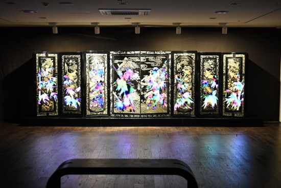 특별히 이번 전시에서는 한국 장인의 숨결이 서린 자연의 총천연색과 첨단기술이 만들어낸 빛을 씨실과 날실로 삼아 미디어 아트로 재해석했다.