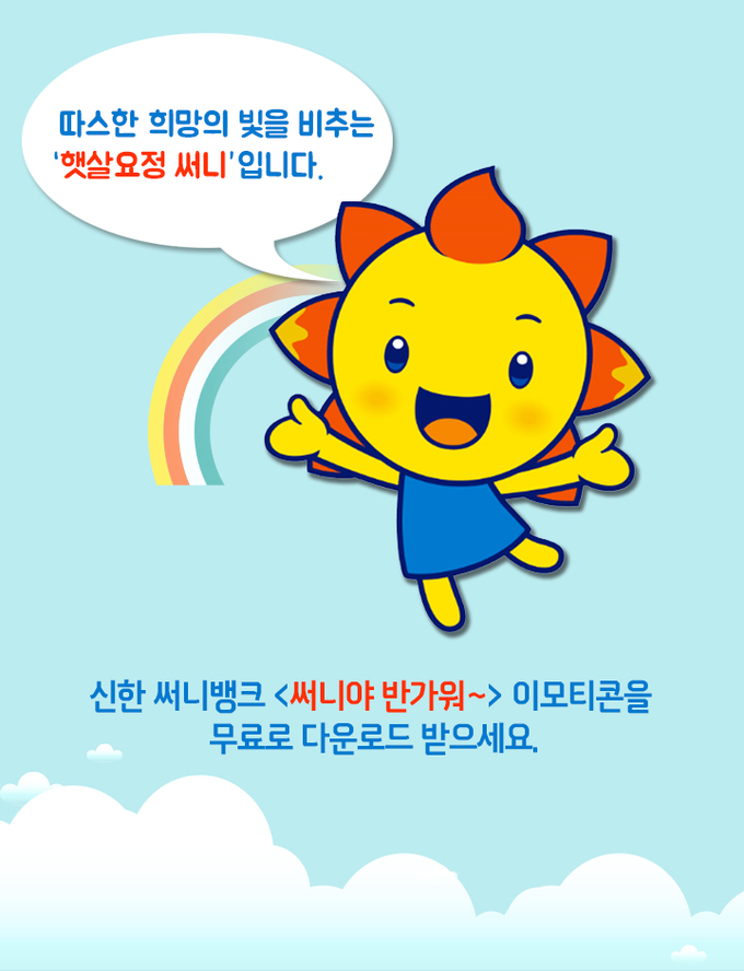 (조세금융신문=최일혁 기자) 신한은행은 18일부터 한달간 ‘햇살요정 써니’를 활용한 카카오톡 이모티콘을 무료로 다운로드 받을 수 있다고 밝혔다.