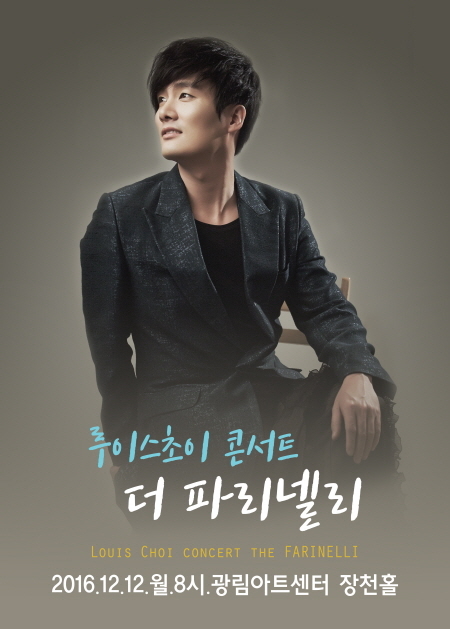 한편 12월 12일 광림아트센터 장천홀에서 펼쳐지는 ‘2016 루이스초이 콘서트 더 파리넬리’의 티켓은 오는 31일2시부터 예스24와 인터파크를 통하여 예매할 수 있다..