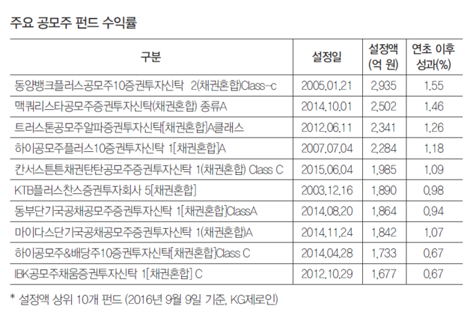 특히 공모주 펀드의 경우 구조상 공모주편입 비중이 10% ~ 15% 수준이다. 공모주 외에는 안전자산으로 운용