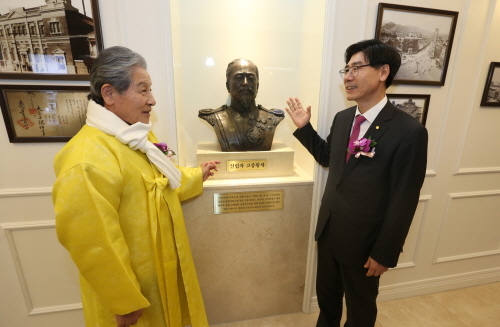 (조세금융신문=최일혁 기자) 우리은행은 지난 8일 중구 남대문로1가 소재 종로금융센터(구 광통관)에서 이광구 은행장 및 황손 이석(황실문화재단 이사장, 고종황제의 손자) 등 임직원이 참석한 가운데 ‘고종황제 흉상 제막식’을 실시했다고 9일 밝혔다.