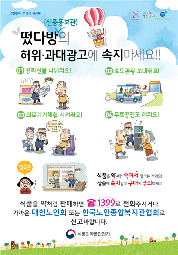 이어 “식품과 의료기기 구매 시 질병치료 등에 특효가 있다고 거짓광고 하는 행위에 속지 않아야 하며 불법 판매행위를 목격할 경우 즉시 신고를 해야 할 것”을 당부했다.