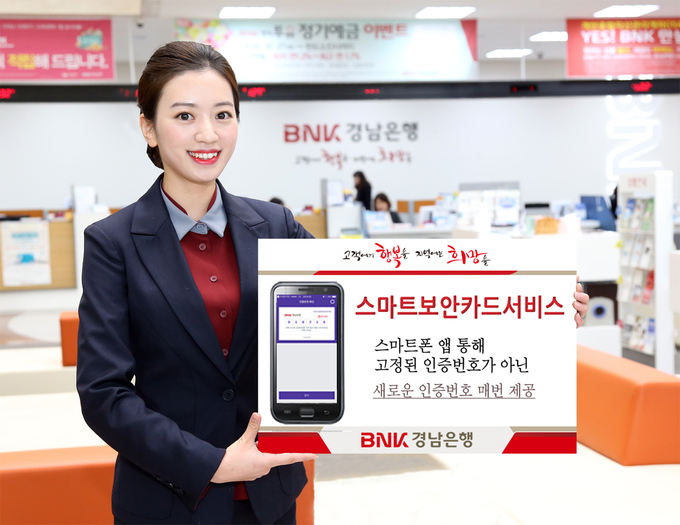(조세금융신문=민서홍 기자) BNK경남은행은 스마트뱅킹·인터넷뱅킹·텔레뱅킹 등 전자금융거래 이용 고객들의 편의와 보안성 강화를 위한 ‘스마트보안카드서비스’를 시행하고 있다고 5일 밝혔다.